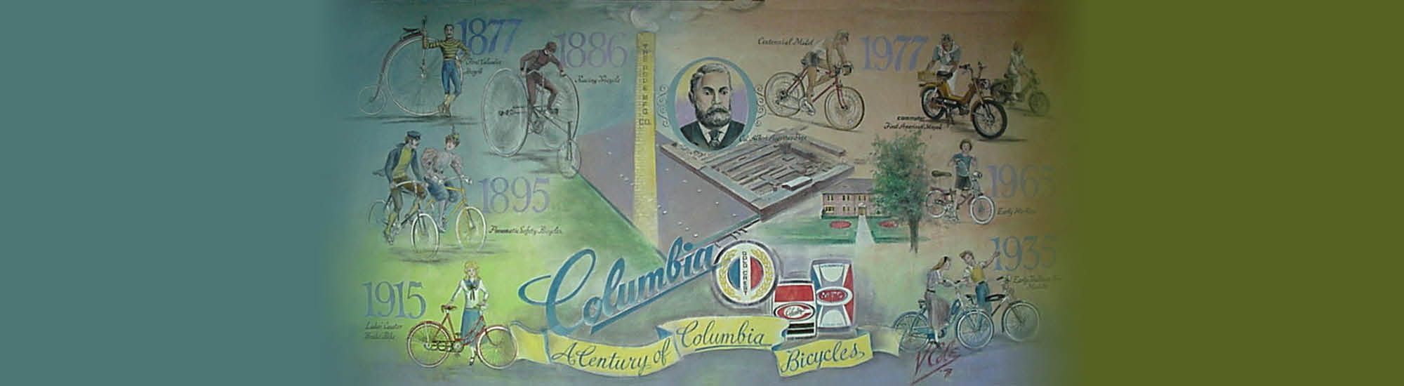 In 1877, Col. Albert Pope founded the bicycle industry in the United States. One of the products manufactured was the Columbia Bicycle.