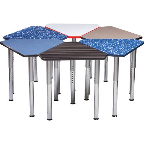 Our Diamond Hexagon Puzzle Table with Galaxy legs offers incredible flexibility for creating collaborative learning pods. Columbia’s exclusive Galaxy legs come in either adjustable or fixed heights, and a pod of six tables can be equipped with an optional stand-alone charging station.