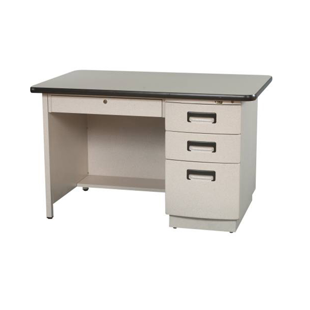 Columbia's quality teachers’ desks are appreciated for their distinct, contemporary style, curved drawer fronts, enclosed pedestal bases and classic 20-gauge steel construction. Ideal for any office or classroom, our single pedestal desk is available in either Granite or Sandstone Spec Flek® finish with a choice of 12 designer laminates and 9 decorator edge band colors.