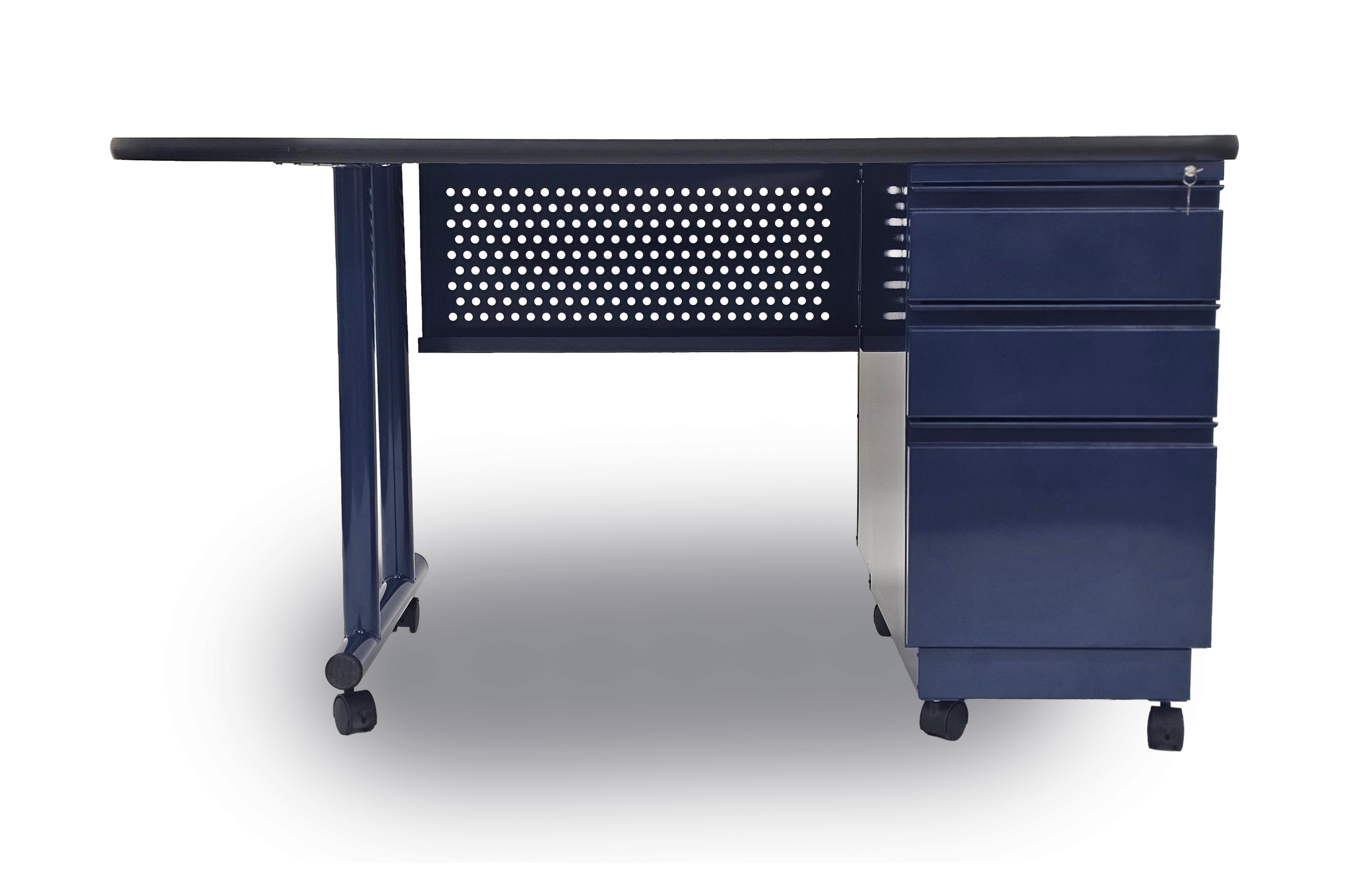 The integrated three-drawer locking storage system offers ample room for teaching essentials. Our signature Double Galaxy T-Leg provides unmatched stability, giving the desk a bold yet balanced presence. The Smart Space Pro is engineered with the same rugged durability that has defined Columbia Furniture for decades. Offered with both casters or glides.