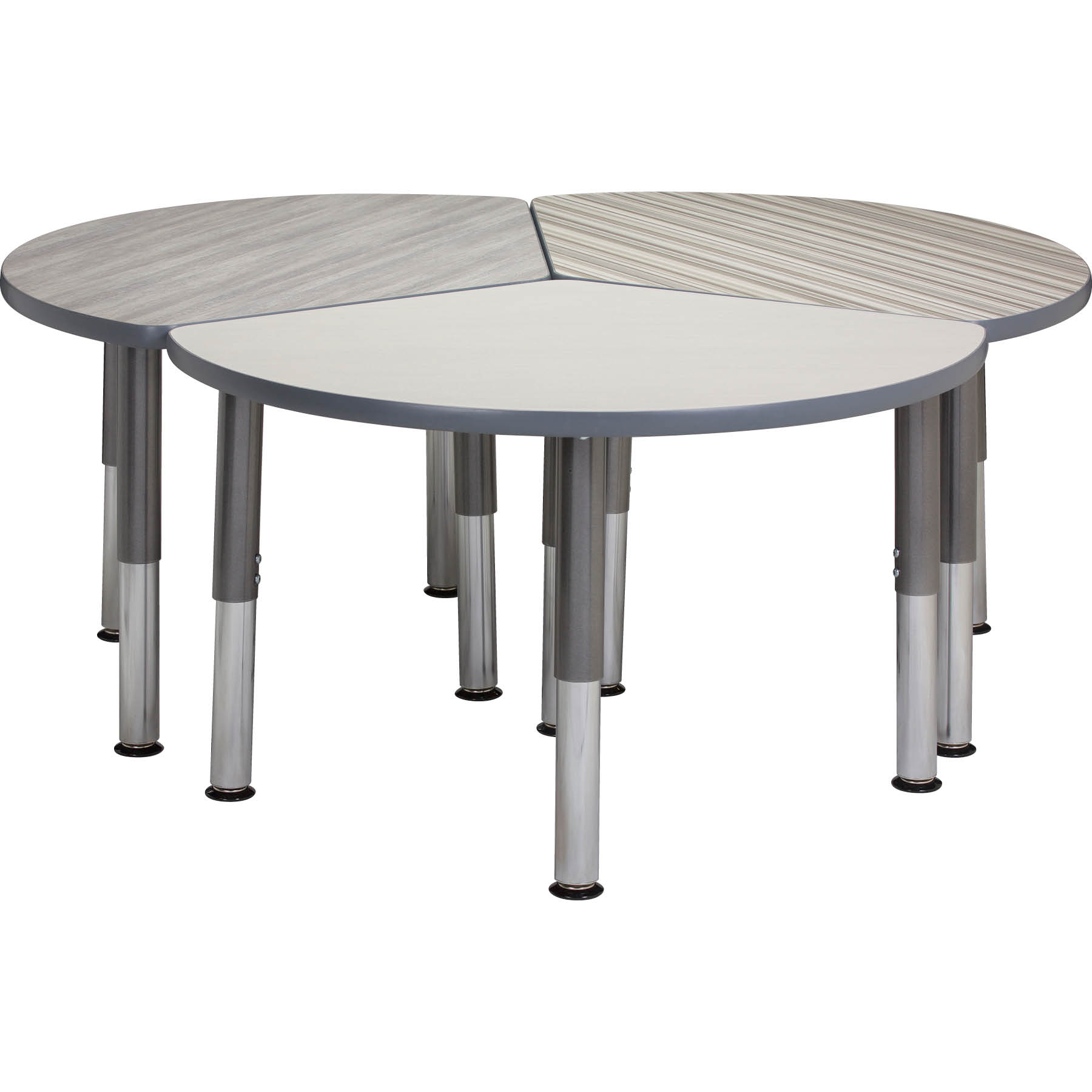 Stage our Third Pie Galaxy Table individually for independent learning or group three together for collaborative learning. Assembly is as easy as sliding each leg under a bracket and driving one screw per leg. Our Galaxy legs are the most attractive, yet strongest, in the industry—and the strongest.
